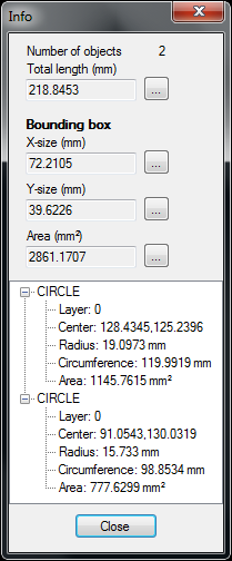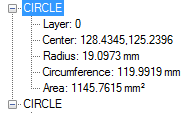 The "Info" command is the fastest way to get information from objects on the drawing. Draw two circles. Start the "Info" command and select the circles.