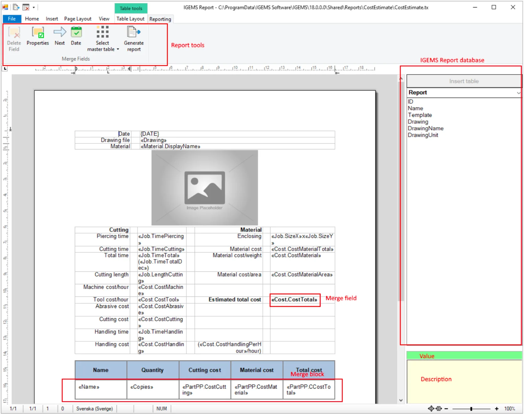 When you create a new template, you can either change the existing one in IGEMS or create a new one. To change the template, make a report and press “F5” when you have opened the report.