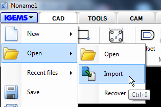 Hold down CTRL or SHIFT while inserting the part to also insert the name of the file as text. This text can be used to identify the name when making parts. The "Import" command can use the same files as "Open".