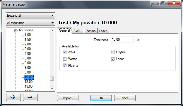 IGEMS is developed for Abrasive Water Jet Cutting, but also supports other machine types such as Plasma, Oxyfuel and Laser machines. These machines have similar inputs.