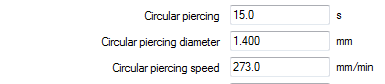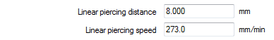 Check the two boxes "As cutting" to not use any special values. When cutting brittle material, piercing at a lower pressure is often needed.