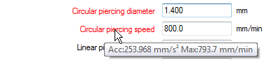 Hold the pointer on the text to see a tooltip with information about the actual accelerations. The maximum acceleration is set in the machine setup.