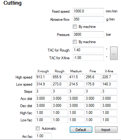 This controls the amount of abrasive. To use the standard amount of abrasive check the box "By machine".