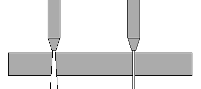 Depending on material properties and cutting parameters the cut through the material is not always 100% straight.