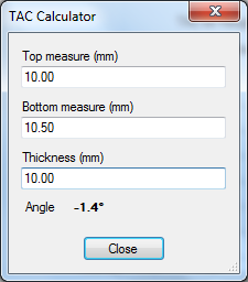 The TAC Calculator calculates the angles. If the measurements are smaller on the bottom side on an outside geometry then the angles are negative else positive.