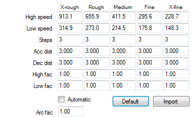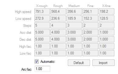 The manual speed optimizing uses the same formulas as IGEMS R8 and R9. Use this option to fine-tune parameters. The values are not changed in an update of IGEMS.