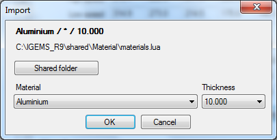 Be sure to use the same material and thicknesses as in IGEMS R10.