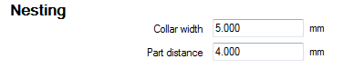 This value sets the default value for the part distance. The value is used in the "Nesting" commands.